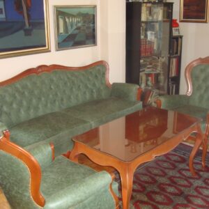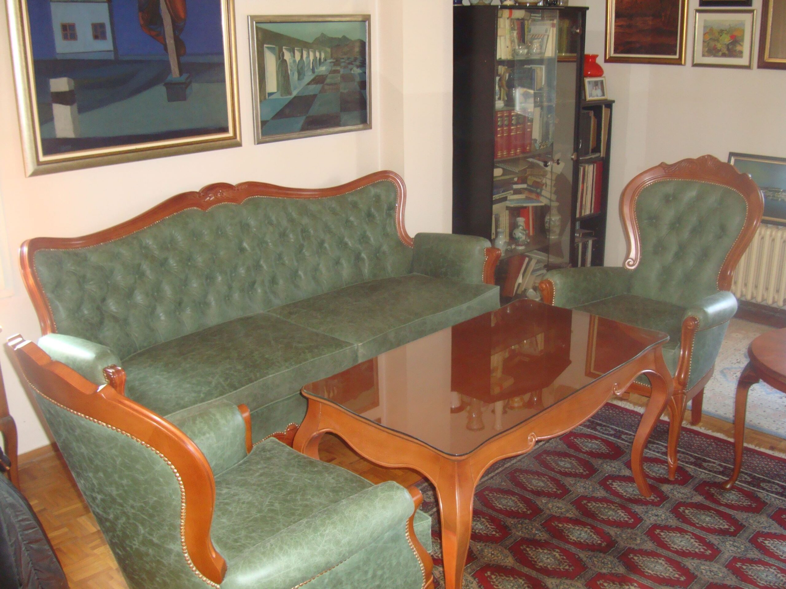 Opis proizvoda: Mebl štof ili koža. Boja drveta po izboru. Tehničke specifikacije: Materijali: štof, koža, trešnja Dostupnost proizvoda: Po porudžbini